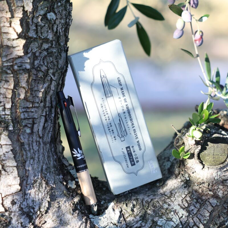 小豆島で大切に育てられてきたオリーブの剪定木を活用し、世界的に支持されるJETSTREAM(ジェットストリーム)の多機能ペンのグリップ部分に加工した、特別な一本です。