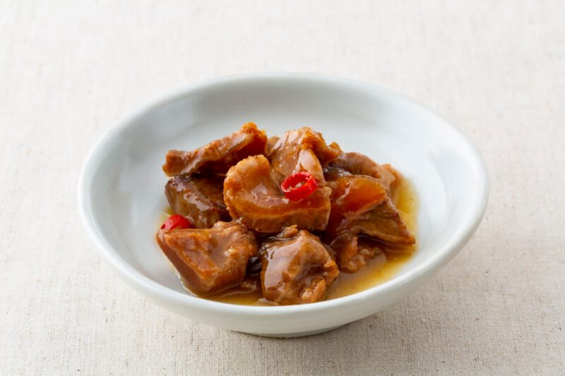 嚴選香川縣產橄欖飼養的「橄欖和牛」牛筋,搭配小豆島醬油慢火燉煮,再加入辣椒提味,香辣濃郁。